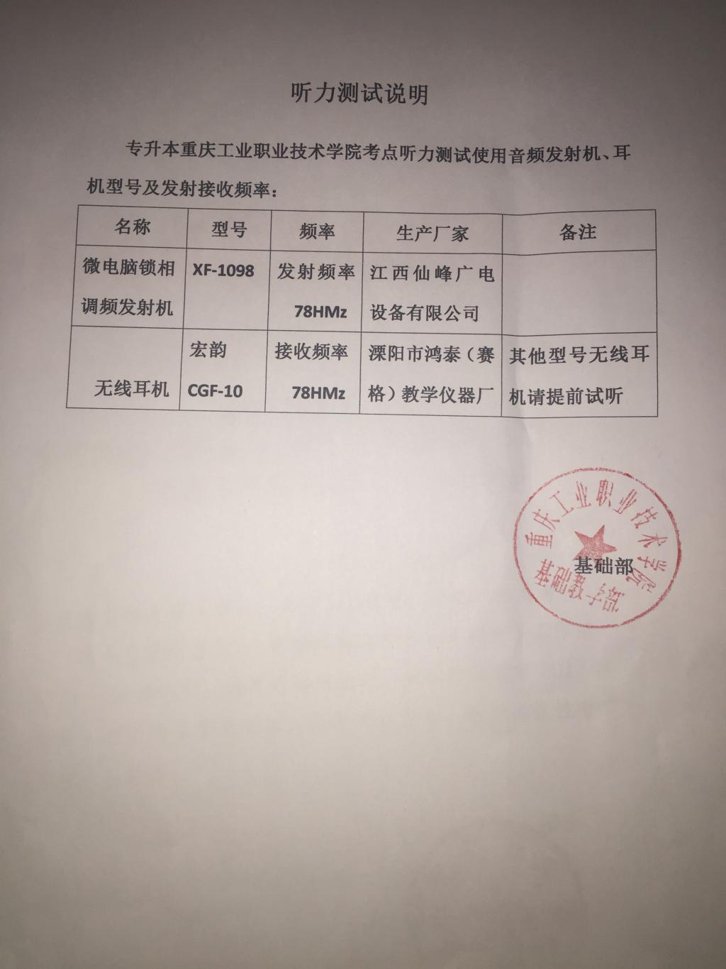 附件1:听力播放使用音频发射机,耳机型号及接收频率(点击下载)