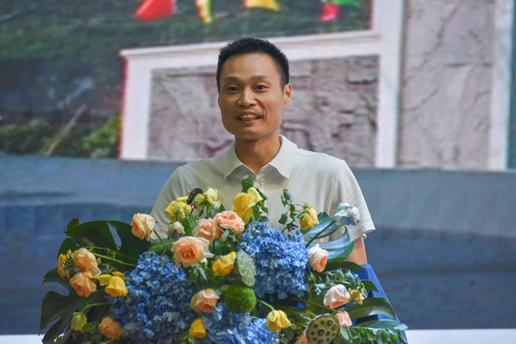 图为重庆市“巴渝学者”青年学者宋阳作为优秀教师代表发言,他对学校的关怀和支持,教师团队的指导和帮助表达了衷心的感谢。他表示,将不断提高教学水平,落实立德树人根本任务,潜心教书育人,培养更多能工巧匠、大国工匠,为学校发展贡献智慧和力量