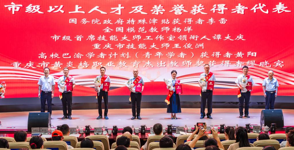 张荣宣读学校表彰奖励2024年度优秀教职工决定,通报2023—2024学年集体和个人获得省部级以上表彰奖励情况以及对从事教育工作三十年教职工的认定。经个人申报、单位推荐、学校组织评审并经学校党委审议通过,决定对2024年度33名优秀教师、13名教书育人楷模、27名优秀教育工作者等共计104名荣誉获得者进行表彰。张荣强调,希望全校教职工牢记为党育人、为国育才使命,以优秀教职工为榜样,不忘立德树人初心,在各自的岗位上扎实工作,以实际行动践行教育家精神。