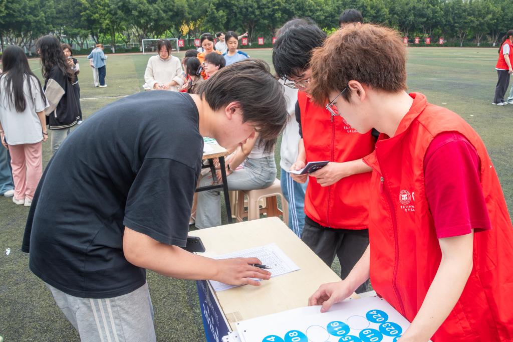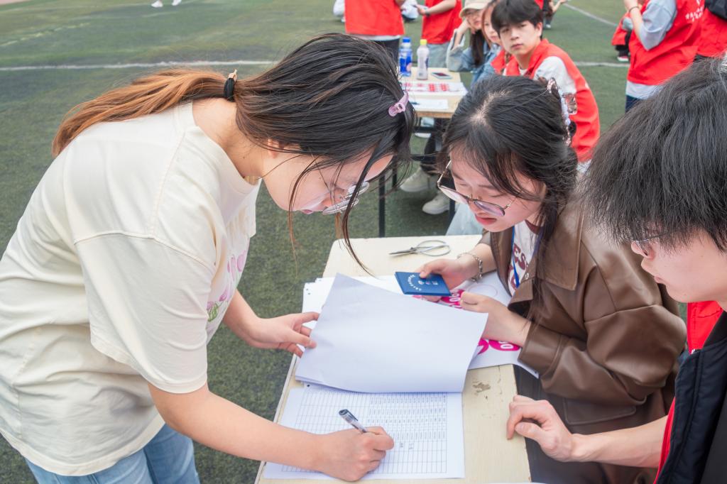 阳光明媚,气候宜人,正是奔跑好时节。活动现场设置了多个功能区域,检录区、休息区、医疗保障区等,为参赛师生提供细致周到的服务。赛道全程定点驻守志愿者,为参赛师生做好方向指引。参与活动的师生们早早来到活动现场,在身着统一制服的志愿者们引导下有序签到,领取参赛号码牌和活动纪念品。大家精神抖擞、热情高涨,脸上洋溢着阳光自信的笑容,准备在赛道上一展身手。