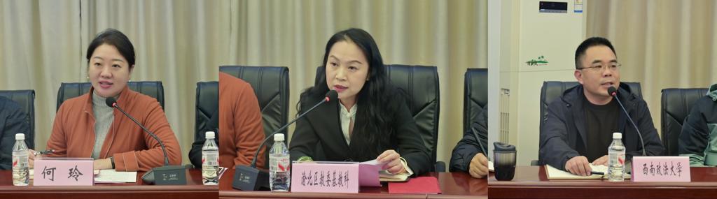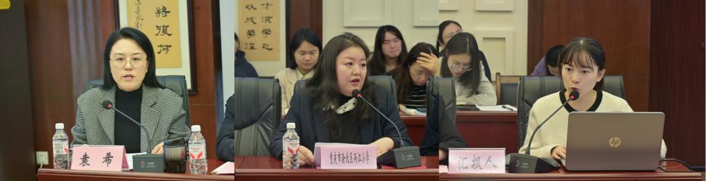 在专题解析环节,习近平新时代中国特色社会主义思想概论教研室主任黄雅恒围绕“坚持党的全面领导”这一专题,深入剖析内在逻辑、理论精髓以及教学重点和难点。在跨学段说课环节,教师代表杨昌彪和龚梦玲分别结合学校各专业特点展示教学设计,突出深化学生理想信念,解决学生实际问题,提升学生思考能力的目的,让思政教育真正入脑入心。在集体研讨阶段,重庆红岩革命历史博物馆部长何玲介绍了红岩场馆针对不同学习阶段的学生,设计的不同讲解主题和参观模式,这种“同主题、差异化” 的设计理念,生动展现了思政教育从情感启蒙到理论认同的进阶路径。渝北区教委基教科副科长江娅表示,各学校要共享思政实践基地资源,进一步推动大中小学思政课一体化建设。西南政法大学马克思主义学院副院长程文标提出,要从“讲深”“讲透”“讲活”三个方面从理论高度阐释习近平新时代中国特色社会主义思想的世界观和方法论,进一步深化学生的理想信念和使命担当。渝北两江中学高中政治教师钟美琪表示,在讲课中要针对高中段学习的重难点进行解析,引导学生将个人理想与民族复兴相结合,明确责任担当。渝北两江小学“炫彩”班主任工作室团队的教师涂建嫔、曾文兰指出小学阶段思政课的教学设计是通过让低年级与高年级同学共同完成情景表演等具象化方式,启蒙学生的家国情怀。