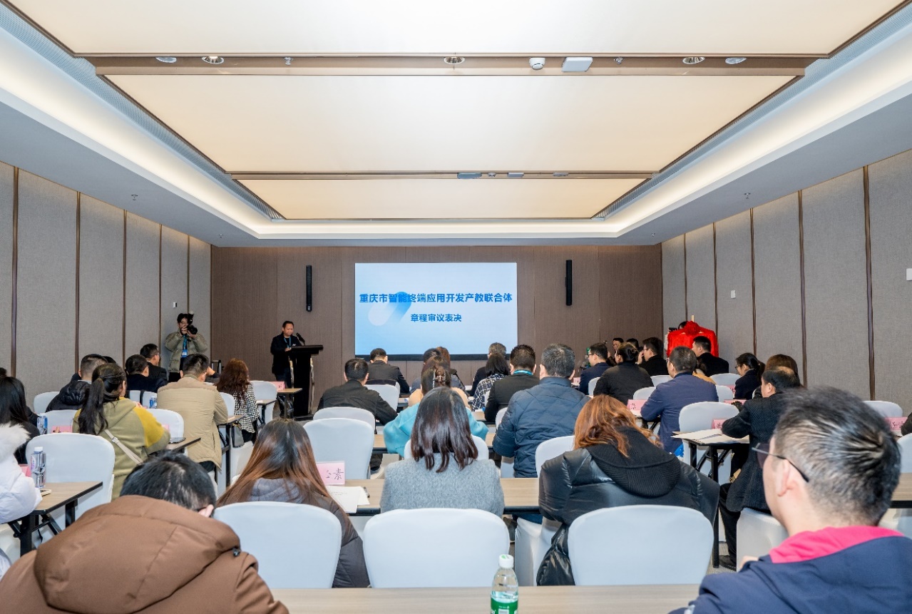 会上,《重庆市智能终端应用开发产教联合体章程》和第一届理事会成员建议名单经全体表决通过。李云表示,联合体章程是联合体规范发展的 “压舱石”。王唐路表示,理事会名单兼顾各方,体现了“共建、共治、共享”的原则。