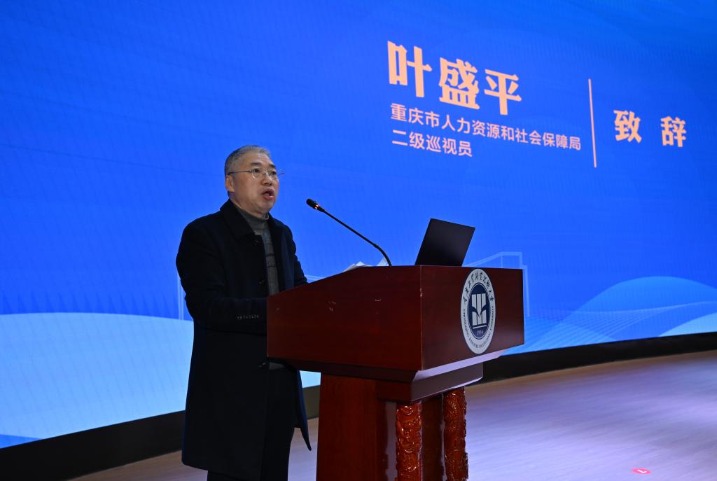 大会第一阶段,叶盛平代表重庆市人力资源和社会保障局致辞。他指出,重庆正迭代升级 “33618” 现代制造业集群体系,亟需高层次技术技能人才,学校作为全市职业教育 “排头兵”,召开此次大会意义重大。市人社局将从政策保障、技能竞赛平台搭建、人才服务优化三方面,为学校人才队伍建设提供精准支持,共同营造 “近悦远来” 的人才生态。