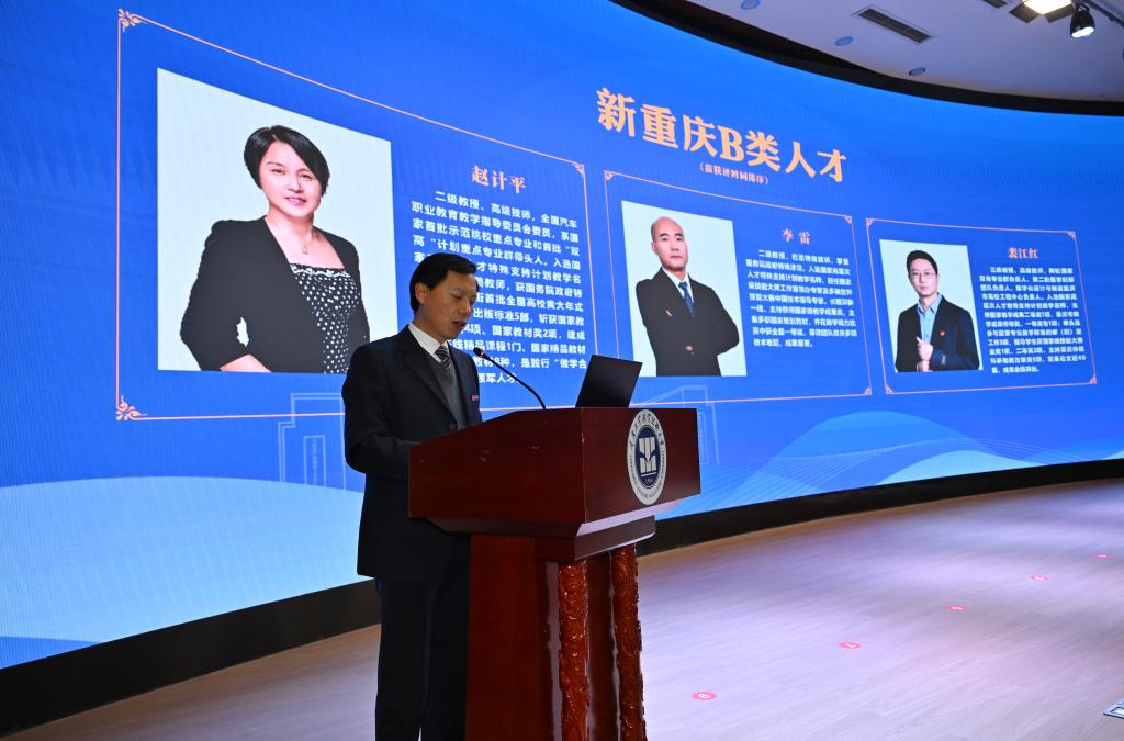 1月23日,学校第一次人才工作大会在两江校区第一学术报告厅召开,南川校区及各二级学院通过云直播设立分会场。本次大会以 “才聚新重工 共创赢未来——全面构建本科层次职教人才新矩阵”为主题,是学校升格为本科层次职业技术大学后首次召开的人才工作专题盛会,旨在凝聚人才共识、擘画发展蓝图,为学校高质量发展注入强劲动能。重庆市委教育工委委员、市教委副主任金玲,市人社局二级巡视员叶盛平,市教委人事处处长李斌、副处长余冠军,市人社局人力资源流动管理处处长王军国等出席会议。学校党委书记郭天平,党委副书记、校长周传德等全体校领导,科级以上干部及教师代表参加会议。会议由党委常委、副校长李雷主持。